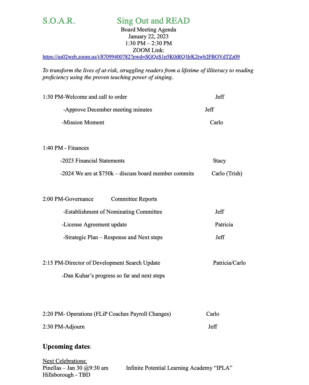 - Jan 22, 2024 Meeting Agenda - 1/22/24